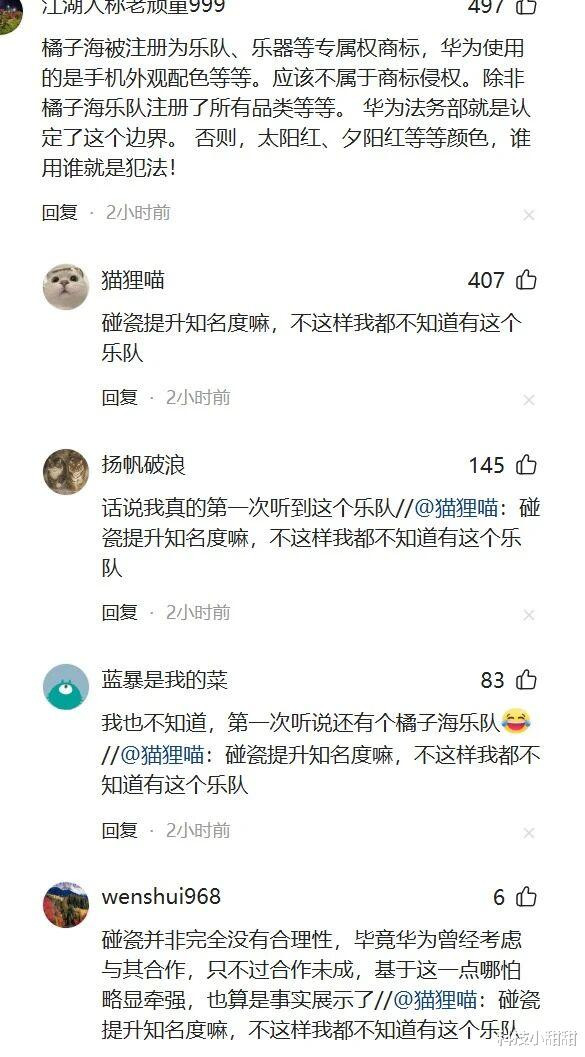 当然了,也有网友表示橘子海这是在“碰瓷”,当随即有网友表示“碰瓷并非完全没有合理性,毕竟华为曾经考虑与其合作,只不过合作未成。”